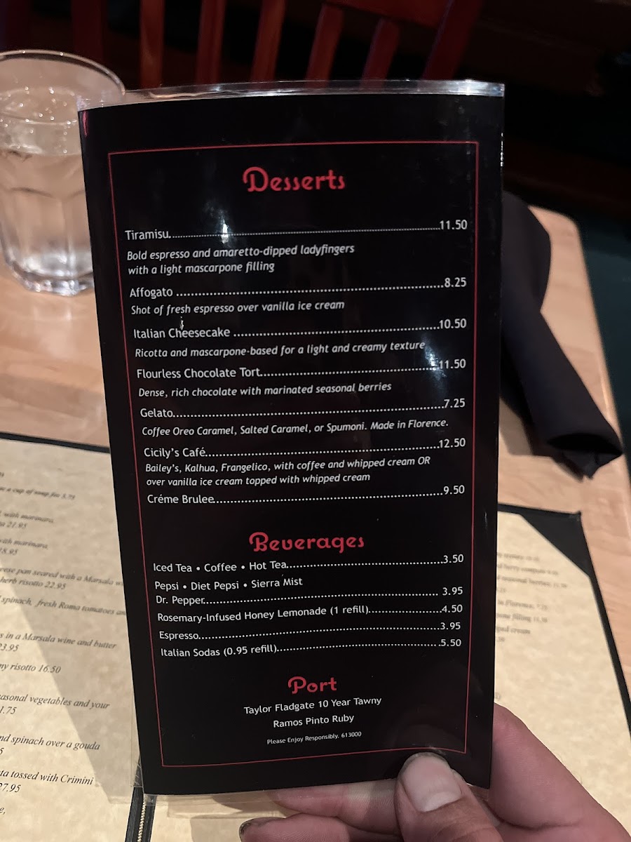Cicily's puts a significant emphasis on fresh ingredients and impeccable preparation, ensuring a consistently delightful experience. Patrons have noted the attentive service and the inviting outdoor patio as highlights of their dining experience. The warm interior lighting complements the cozy atmosphere, making it an ideal spot for any occasion. Whether you're indulging in their sumptuous calamari or ending with a fluffy tiramisu, Cicily's promises to impress and beckons for repeat visits.